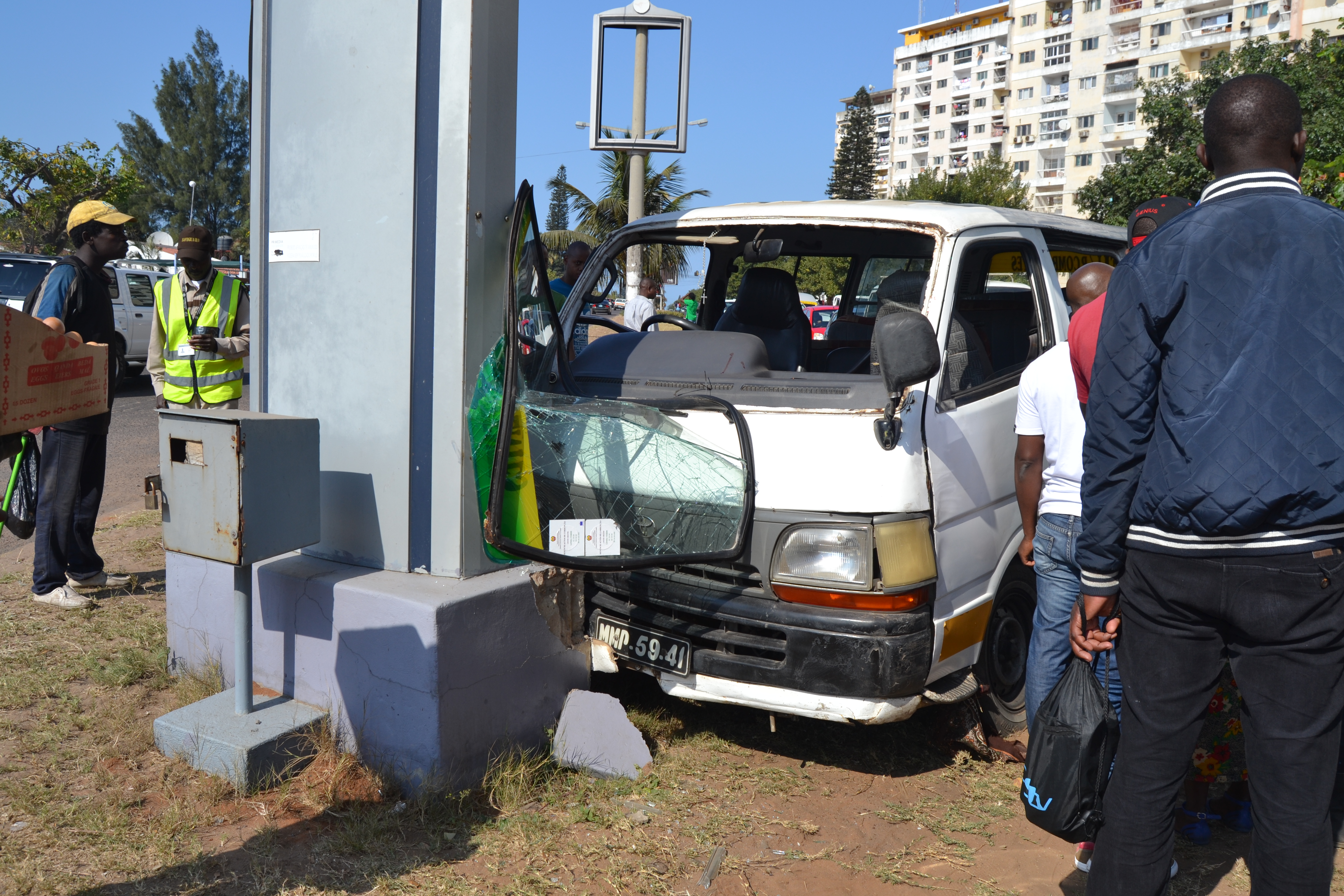 Um mini-bus de transporte semi-colectivo de passageiros embateu violentamente, no primeiro quarto da hora 13 de hoje, contra a base de betão de um painel publicitário no fim da avenida Keneth Kaunda na cidade de Maputo. Ao que o MAGAZINE apurou no local, o ‘chapa’ com a lotação máxima permitida de 1…
