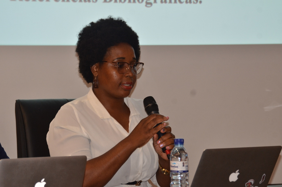 A investigadora Ana Chongo abriu o painel com o tema “Impacto do Facebook na visibilidade das notícias: coberturas dos semanários moçambicanos em períodos pós-eleitorais”, onde analisou o papel das redes sociais na circulação e visibilidade das notícias em contextos eleitorais.