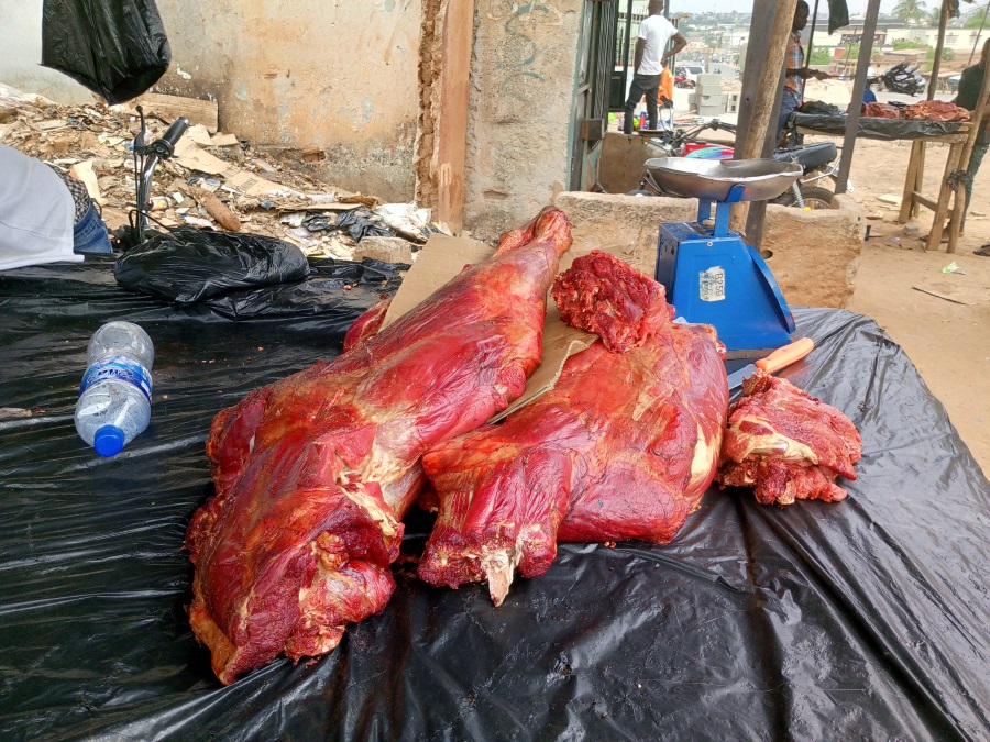 Moscas são atraídas pelo cheiro à putrefação, uma situação que irrita até os próprios vendedores. É que nenhum comerciante usa meios de frio (congeladores) para conservar a carne, que fica exposta ao sol desde as primeiras horas da manhã ao entardecer.