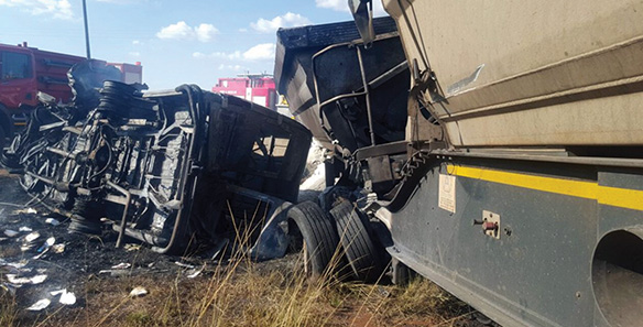 Uma colisão entre um autocarro e um camião causou a morte de pelo menos 18 pessoas, em Machadodorp, província de Mpumalanga.