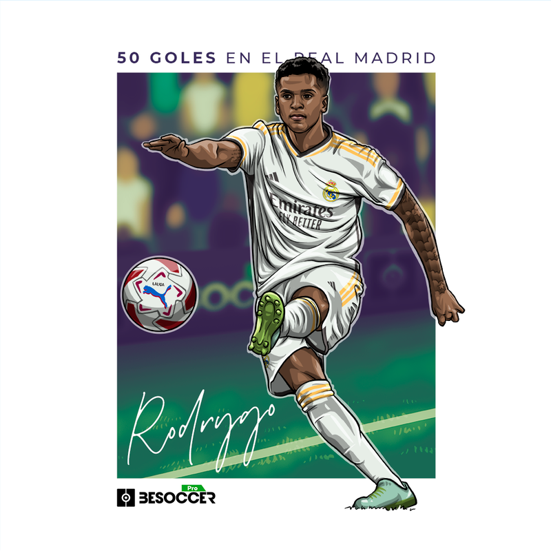 Com apenas 23 anos, o talento de Rodrygo já atingiu a sua maturidade. Na sua quinta temporada no Real Madrid, ele conseguiu superar a montanha-russa do início da temporada e se estabeleceu nos planos de Carlo Ancelotti com base no seu bom desempenho. Um encaixe perfeito para o técnico italiano, que está apto para extrair o melhor do brasileiro, que agora celebra mais uma conquista: 50 gols com o Real Madrid.