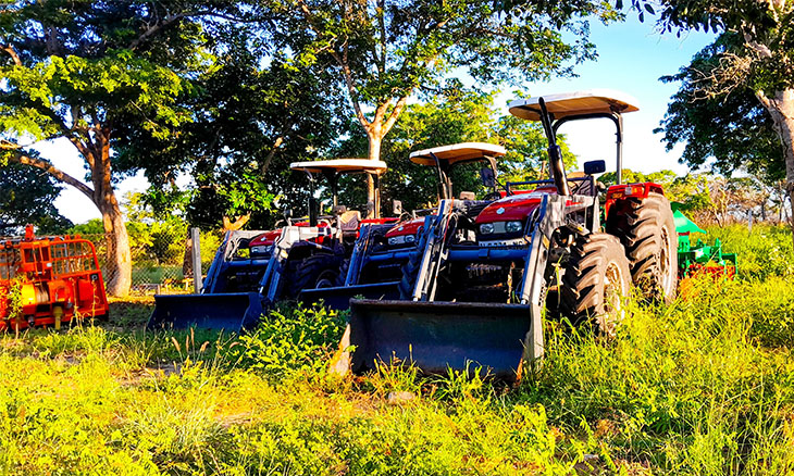 Desde lá, as máquinas, tais como cultivadores, adubadores, pulverizadores, semeadores e veículos de escoamento, estão abandonadas no meio do capim e debaixo do sol e da chuva.