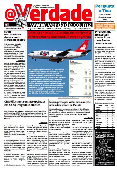 @Verdade pode ser lido todos os dias no seu email, cadastrando-se em http://www.verdade.co.mz/fale-connosco/newsletter ou no site www.verdade.co.mz