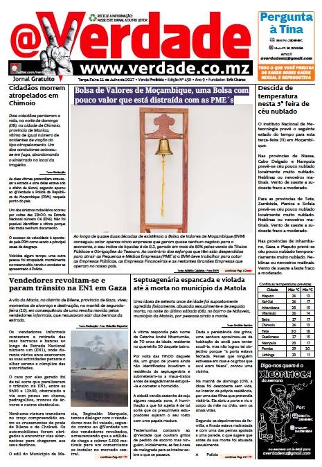 @Verdade pode ser lido todos os dias no seu email, cadastrando-se em http://www.verdade.co.mz/fale-connosco/newsletter ou no site www.verdade.co.mz