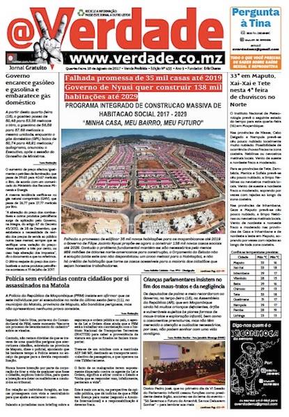 @Verdade pode ser lido todos os dias no seu email, cadastrando-se em http://www.verdade.co.mz/fale-connosco/newsletter ou no site www.verdade.co.mz